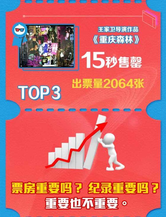 毫不意外,传说中的“北影节速度”重现江湖。淘票票开票后1分钟票房200万,2分钟票房300万,5分钟票房600万,12分钟票房900万。和去年相比,售票速度高了1倍还多。其中,《布达佩斯大饭店》5场10秒钟就被抢购一空,成为最快售罄的影片,排名第二、第三的分别是《泰坦尼克号》6场12秒售罄、《重庆森林》4场15秒售罄,速度快到难以置信。