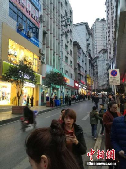 图为地震后在重庆彭水县城民众到街上避险。文/刘相琳 韩璐 网友供图